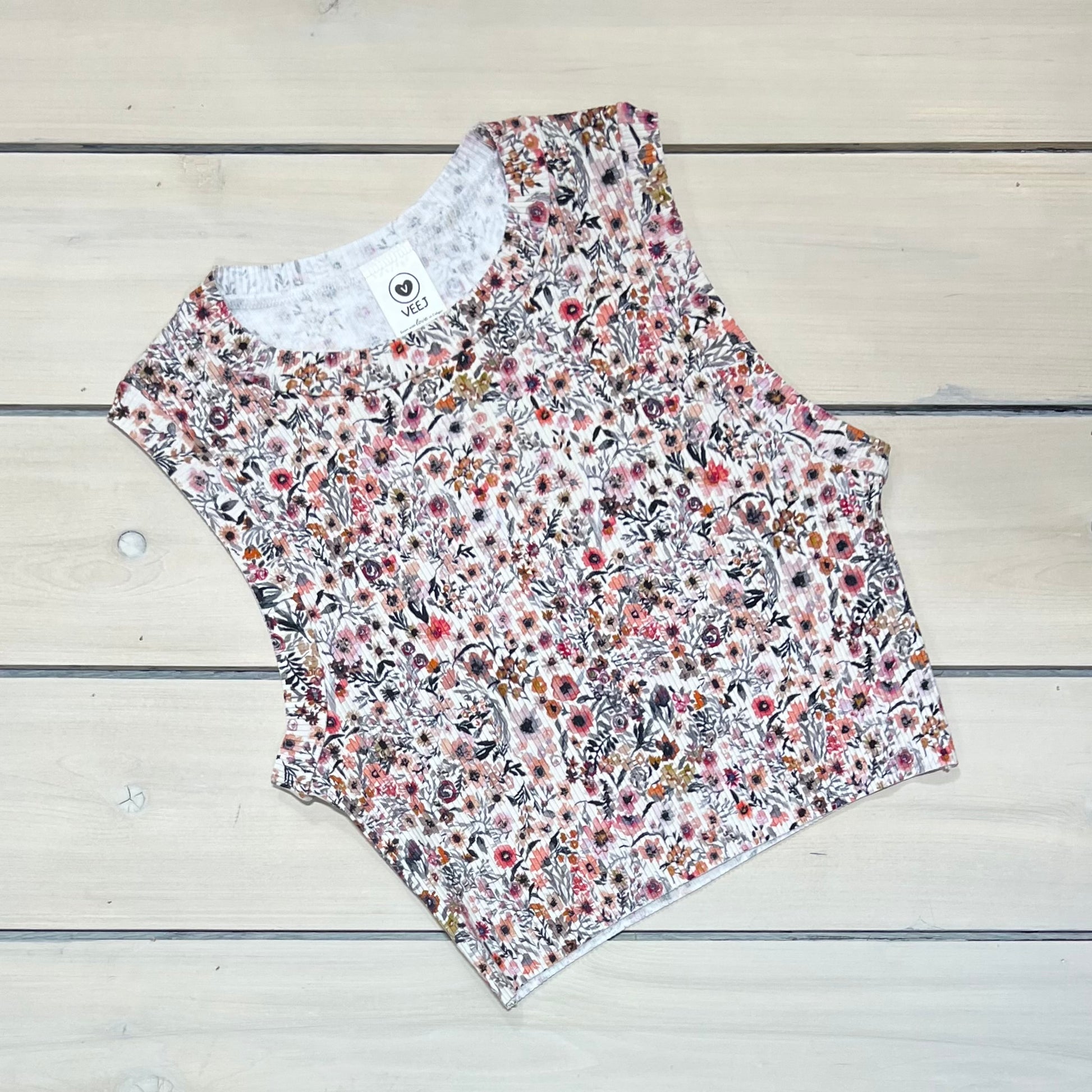 The cropped BE FREE TANK features raw edges. Made with soft wide cotton ribbing fabric.