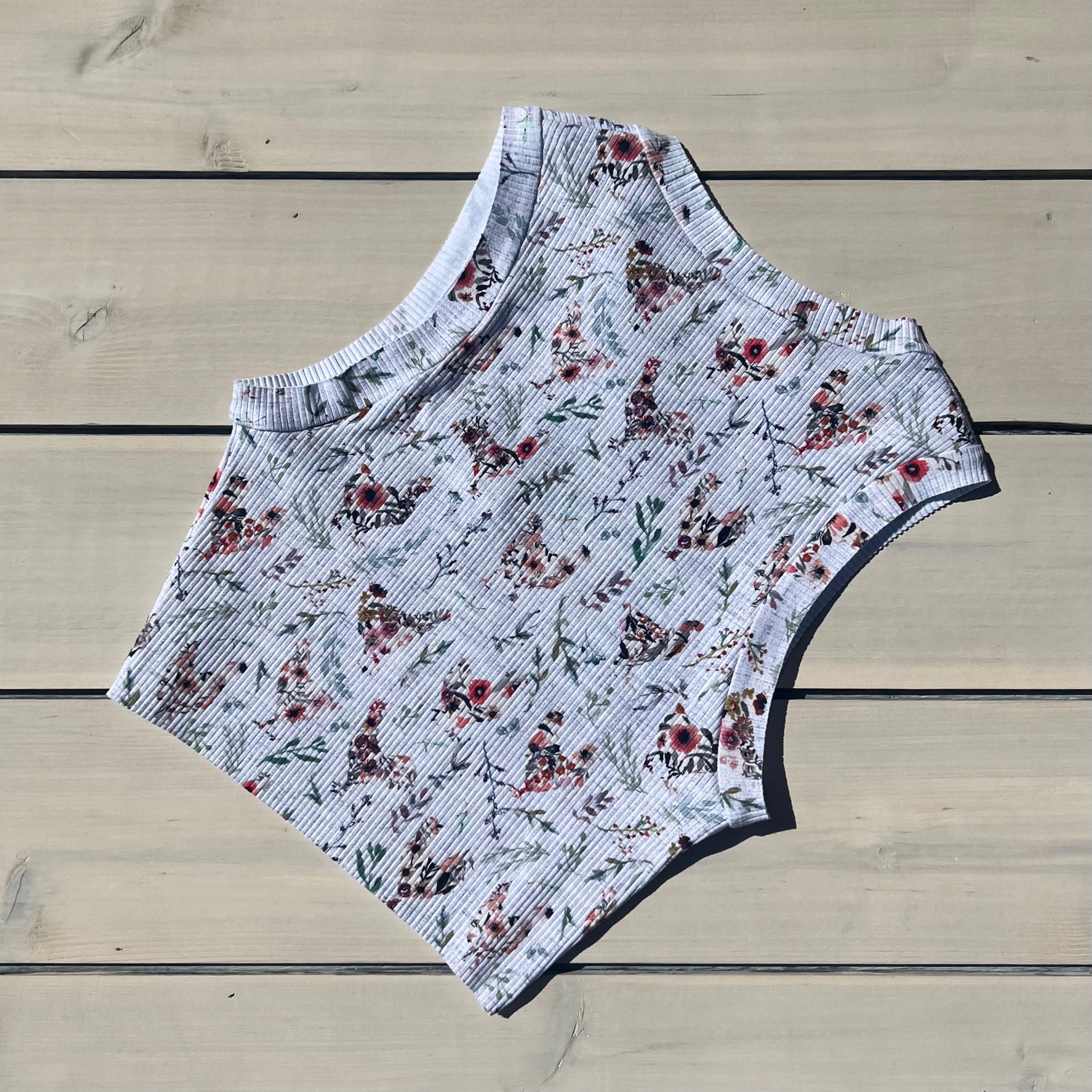 ONLY 2 LEFT in this print, less than 5 of these were made in this gorgeous FLORAL CHICKEN print that supports Robin's Refuge!! $5 will be donated to this organization with each sale f an item in this print. Don't miss out on this amazing top!